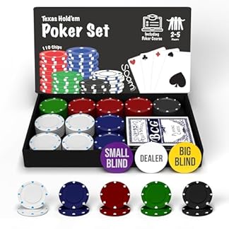 €7,25Produkt kaufenPoker Set – Enthält Pokerspiel 110 Chips Perfekt für 2-5 Spieler, Poker Chips Set, Spielkarten, Dealer Button, Big Blind Button und Small Blind Button, Kompaktes Pokerset Texas Hold’em