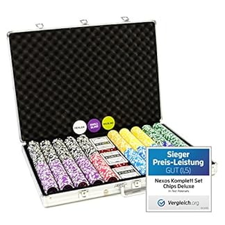 Nexos Trading Pokerkoffer 1000 Chips Laser Pokerchips Poker Komplett Set Alu-Koffer, Chips mit Metallkern 12g inkl. Kunststoffkarten und weiterem Zubehör