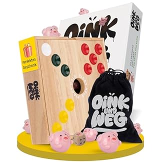 Spielario® OINK und Weg | Schweinchen Spiel Holz | Das lustige Familienspiel für zwischendurch | Big Hole Schweinchenspiel | Mehr Spannung durch taktisches Würfeln | Schweine Spiel als Geschenk