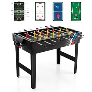 DREAMADE 4 IN 1 Tischkicker Spieltisch mit Tischfußball Airhockey Billard und Tischtennis, Fußball Tischspiel, Tischkicker Tischfussball für Kinder und Erwachsene