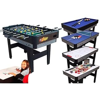 4 in 1 Multi Sport Spieltisch, Combo Spieltisch für Kinder Billardtisch, Kickertisch, Tischtennistisch, Air Hockey mit allem Zubehör tolles Geschenk für Kinder (4ft, 1.2m)