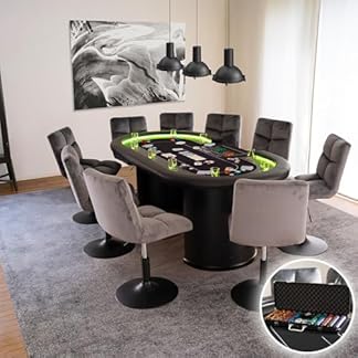 Home Deluxe – Pokertisch mit 2 Stühlen Double UP – Tisch mit LED Beleuchtung u. Getränkehalter, Maße: 215 x 106 x 78 cm, Stuhlfarbe: Hellgrau I Spieltisch Poker Tisch
