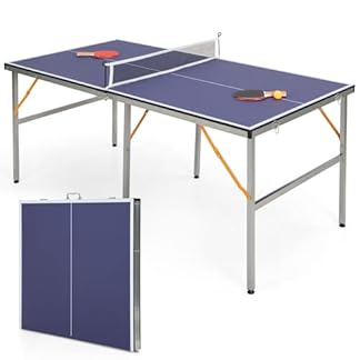 LIFEZEAL Ping Pong Table, Mini Tischtennisplatte aus Metall, Ping Pong Tisch mit Netz, Bälle, Schläger, Faltbare Tischtennistisch für Tischtennissport 180 x 90 x 76 cm