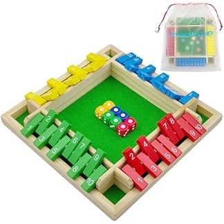 Shut The Box Spiel 4-Spieler, Holz Brettspiel Holz Mathematik Traditional Pub Board Würfelspiel Reisen Family Brettspiele Urlaub unterhaltsames Mathespiele Spiel für Kinder und Erwachsene [Mehrfarbig]