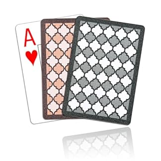 Teskyer 2 Stück Plastik Spielkarten, Wasserdichter Großdruck-Index-Pokerkarten, Schwarz-Orange Rückenmuster Playing Cards für Familien Kartenspiele Party