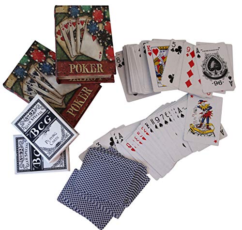 Wunderschönes Pokerkartenspiel nach altem Vorbild hergestellt. Denn auf den Fotos zu sehen, eine dekorative Traktat im antiken Stil. Auf Basis von traditionelle Ausführung entsteht ein antikes Erscheinungsbild. Die Maße der Box per Magnetverschluss lauten Denn folgt: 9 x 13 x 3cm (B x H x T). Die Maße der Karten 8,7cm x 6,2cm. Es sind im Großen und Ganzen 108 Karten inklusive 4 Joker. Das Gewicht beträgt 0,6kg. Die Dekoration dient im Gegensatz dazu zum Größenvergleich und ist nicht Bestandteil des Angebotes.