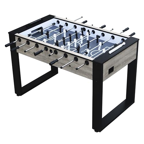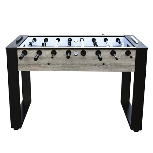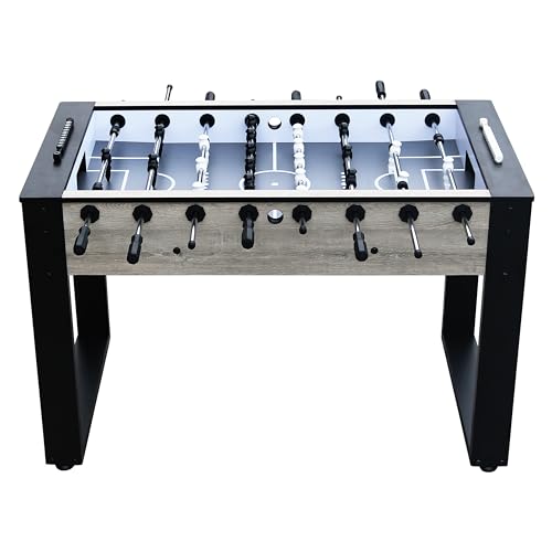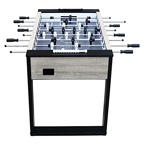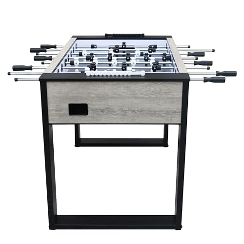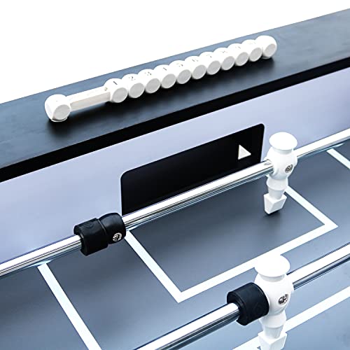 HOCHWERTIGE QUALITÄT: Auf dem Metallrahmen ist ein Schrank in Eichenholzoptik mit 38 mm dicken Seiten montiert, der mit einer HPL-Deckschicht versehen ist. An den massiven Spielstangen ( Ø15,8 mm) sind 11 schwarze und 11 weiße Spieler befestigt. Die Kickerstangen sind dank der PVC-Griffe und Nylonlager leicht zu bedienen. Die Silikagel-Puffer halten die Spieler von den Wänden fern, damit sie auch bei hohen Geschwindigkeiten nicht beschädigt werden.