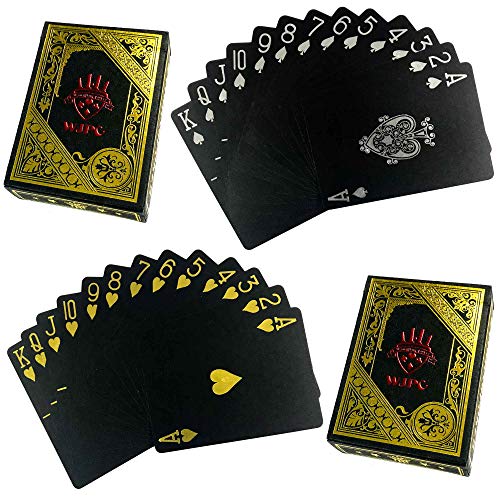 HAC24 2X 54 Blatt Wasserfeste Premium Plastik Spielkarten Schwarz Profi Pokerkarten Kunststoff Poker Skat Karten Playing Cards