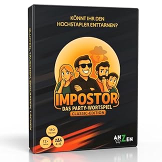 🎭 IMPOSTOR – Das Party-Ratespiel | Classic Veröffentlichung Das geniale Wort- & Bluffspiel für Freunde, Familien & Spielrunden ab 12 Jahren! Tauche ein in ein fesselndes Gesellschaftsspiel voller Abenteuer, Bluff und Wortwitz! Bei IMPOSTOR kennt einer der Spieler das geheime Wort nicht – gleichwohl niemand weiß, wer es ist. Jetzt heißt es: Hinweise geben, verdächtigen, diskutieren – und am Ziel den Hochstapler entlarven! ✅ Ideal für: Familienspiele-Abende Partyspiel-Runden Spieleabende mit Freunden Kommunikations- & Deduktionsfans 🔍 So funktioniert’s: Alle Spieler erhalten eine Begriffskarte – abgesehen der Impostor. Zugegeben Vigilanz: Der Imposter bekommt ein Hilfswort um nicht sofort aufzufliegen. Klare Kennzeichnung des Startspielers je Begriff. Reihum geben alle Hinweise zum gesuchten Begriff. Nach drei Runden wird geschmackvoll: Wer ist der Impostor? Bonuspunkte gibt’s, wenn der Impostor das geheime Wort errät! Mit cleverer Sonderregel für 5 & 6 Spieler, bei der es zusätzliche Beobachterrollen mit spannender Punktewertung gibt. 🎉 Warum du IMPOSTOR lieben wirst: 🎲 Schnell abgesprochen – Zugegeben oft anders! 🤫 Bluffen & Beobachten – perfekt für Fans des Imposter Spiel TikTok-Hypes und von Wortassoziationsspielen 😂 Lacher garantiert – mit Freunden oder der Familie. 🧠 Fördert Menschenkenntnis, Wortgefühl & Kreativität 📦 Kompakt & hochwertig – ideal als Geschenk zu Weihnachten 📦 Lieferumfang: 110 Spielkarten für viele Spielrunden à 6 Begriffe Spielbar mit 4–6 Spielern Ab 12 Jahren Spieldauer: ca. 30 Minuten