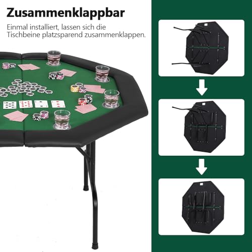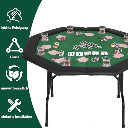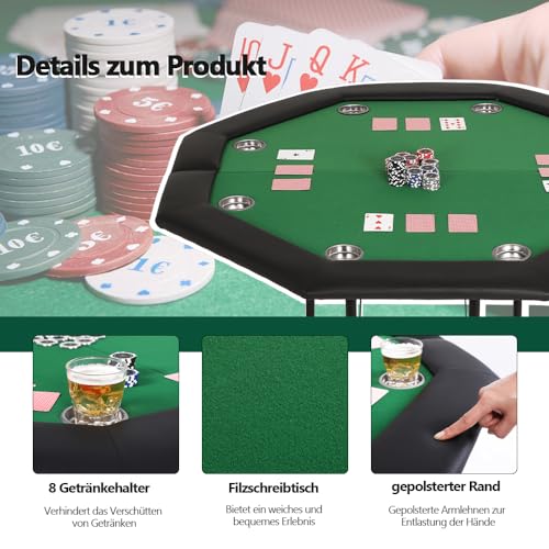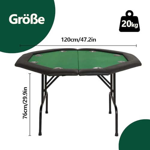 8 Getränkehalter – Unsere klappbaren Pokertische sind achteckig und anbieten Platz stattdessen 2-8 Personen zur gleichen Zeit. Dennoch gibt es 8 Becherhalter am Tisch, demgemäß Sie Ihre eigenen Getränke oder Chips aufbewahren können.