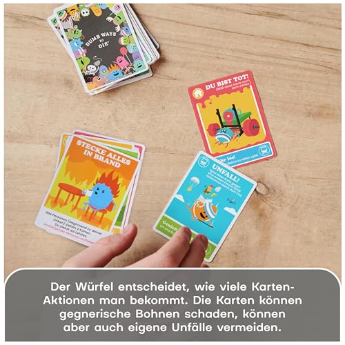 Dumb Ways to Die – das Kartenspiel (deutsche Ausgabe). Rasant-gemeines Party-Kartenspiel, bei dem es ums nackte Überleben der eigenen Bohnen geht. Für 2-5 SpielerInnen ab 12 Jahren, Spieldauer: ca. 15 Minuten