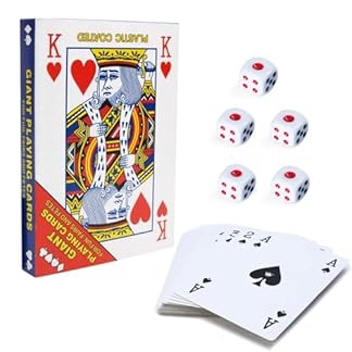 Angebot! Ursprünglicher Preis war: €16,99€13,69Aktueller Preis ist: €13,69.Produkt kaufenTokaneit Übergroßes Poker Deck, Riesige Poker Spielkarten, Spielkarten Spiel Kartenset, Wasserfeste Kunststoffspielkarten mit 5 Würfel für Familie, Party, Pokerkarten, Spiele Karten (17×11,7cm)
